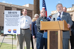 [caption id="attachment_22614" align="alignleft" width="290" caption="The Arizona Interfaith Network and the Arizona Employers for Immigration Reform criticize S1070, the wide-ranging illegal immigration bill set for debate April 13. (Photo by Josh...