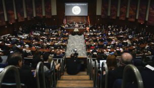 Rep. John Kavanagh, R-Fountain Hills, smiles as he addresses the legislature in the Arizona House of Representatives at the Arizona Capitol Monday, Jan. 13, 2014, in...