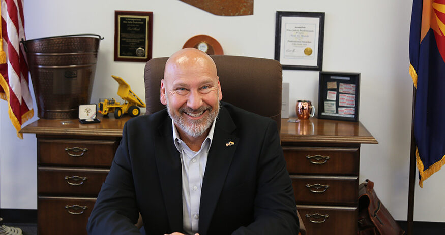 Really the state mine inspector’s office is a regulatory agency. We are an OSHA, if you will, for the mining sector. The difference is we’re very proactive. Every mine site in Arizona gets inspected at least once a year, any underground mine with more than 50 employees quarterly. The whole reason we have a mine inspector is because there was so much mining in the state in 1912. In fact, roughly one in four worked directly in a mine when we became a state. So our primary role is health and safety, to keep the miners safe, and that’s why we do the training side of things. Mining is actually safer than working in retail or education. Most people go, “wow, that’s kind of mind blowing,” but that’s because there’s proactive regulatory enforcement. There is proactive safety training. Our third duty is post-mining reclamation. So we want to make sure that when a mine on private land ceases to mine anymore that they’re not leaving holes in the ground that can hurt the citizens of Arizona. Which brings us to our last [duty] which is abandoned mine closures. Because mining was so prevalent in the state in the late 1800s through the early 1900s and there were no reclamation rules, once they stopped finding ore, they would just leave the hole. So we have an estimated 100,000 holes in the state. So there’s a lot of holes. We’re looking at new and innovative ways to close these abandoned mines to make sure that the citizens of Arizona aren’t falling into these holes and getting hurt. So those are the four primary duties of what we do. I oversee a small team. My goals on the day-to-day, I try to get into as many training classes as I can. I’m actively involved in multiple groups, ARPA, AMA, I work very closely with U of A. So while a little more time than I would like is spent here, I try to be out in the field as much as I can. I try to share my time with all the parts of the agency. That’s what I’m here to do, is support all of them, to push our team to do the best work we can to make Arizona the safest state to mine in.