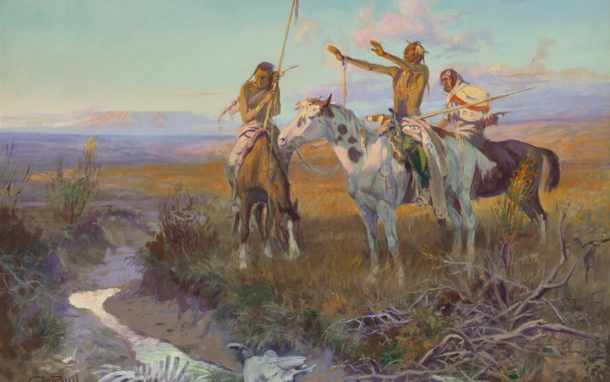 The auction will include 16 sculptures by Remington, along with his painting “Coming to the Call,” which is expected to sell for $6 million to $8 million, according to Christie’s. There will also be both a small and large version of Remington’s “Bronco Buster” bronze sculpture. Russell’s “The Sun Worshippers” is projected to sell for $4 million to $6 million. Bierstadt’s bright vistas of mountains and plains are also among the featured works.
